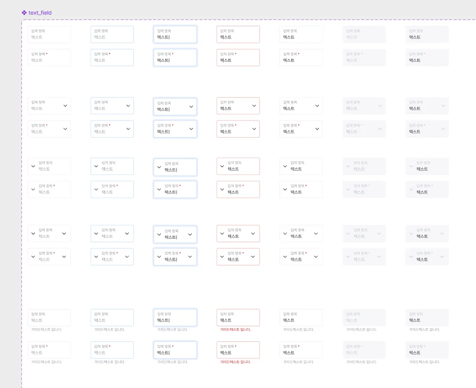 피그마의 컴포넌트 기능을 통해 변수를 설정하는 것에서 그치지 않고, 개발자가 인스펙터 창을 일일이 확인하지 않아도 한눈에 모든 변수를 파악할 수 있도록 정리해야 합니다.