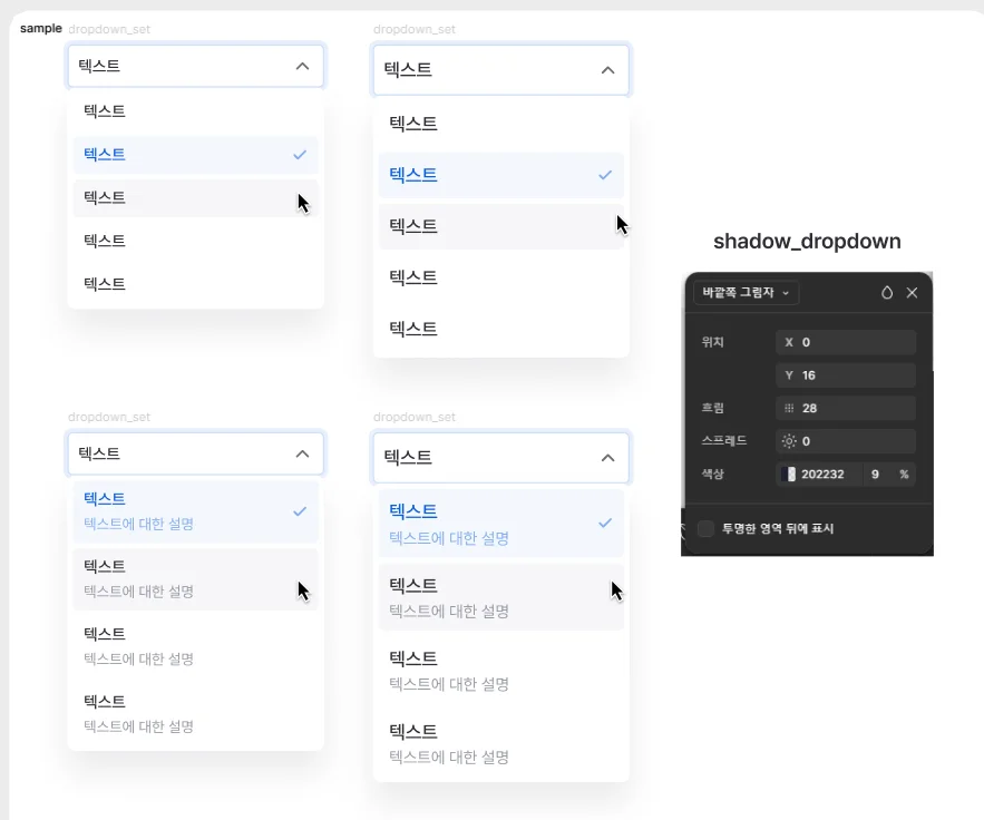 컴포넌트를 우선 작업한 후 컴포넌트 옆 혹은 위에 해당 컴포넌트에 적용된 변수들을 명시적으로 작성합니다.